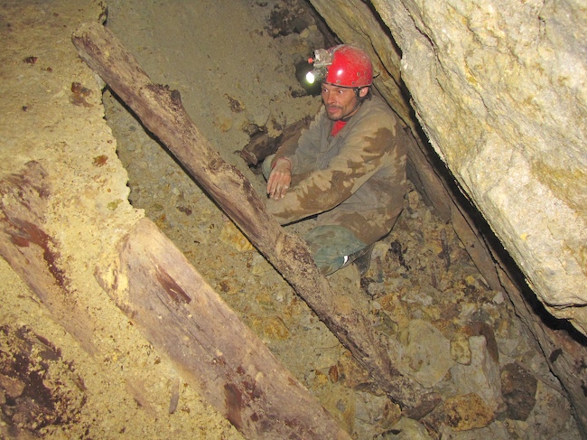 ![]() Festzustellen, aus welcher Zeit dieser Steigbaum stammt, wäre mal eine Aufgabe für die Archäologen! Auf jeden Fall sind hier mehrere Zeitepochen des Bergbaus sichtbar. (Foto Lutz Baldauf) |