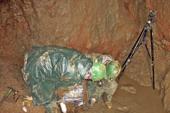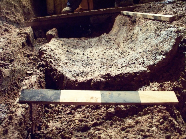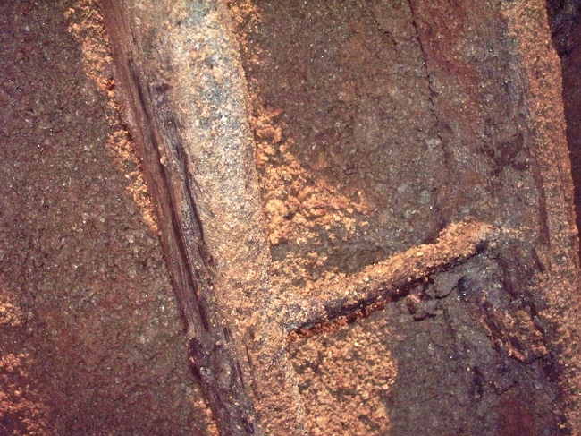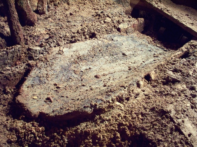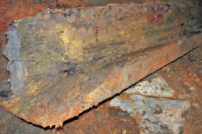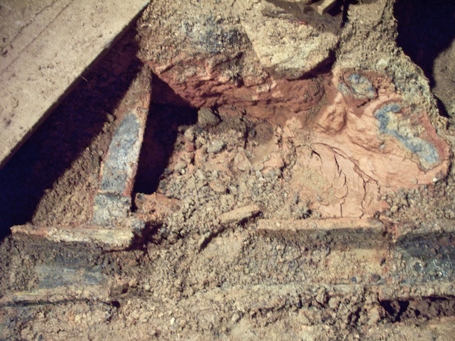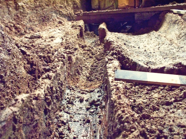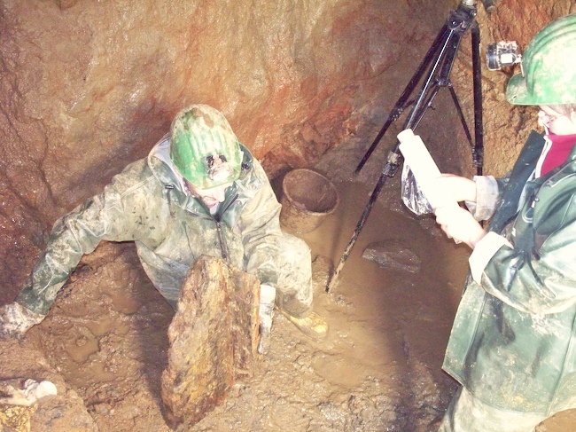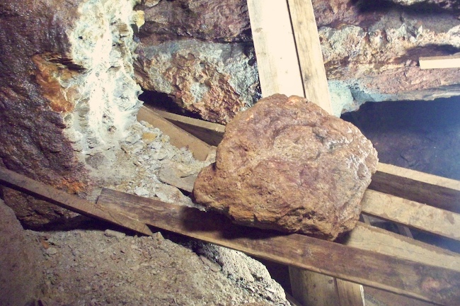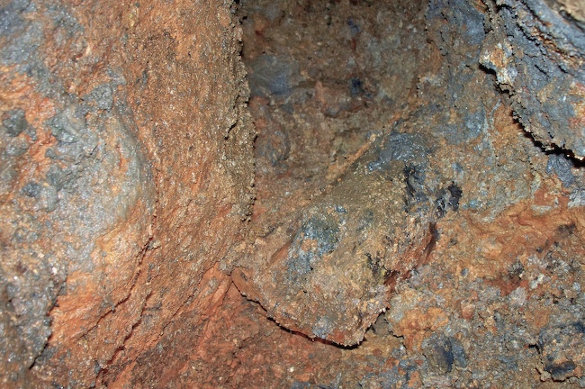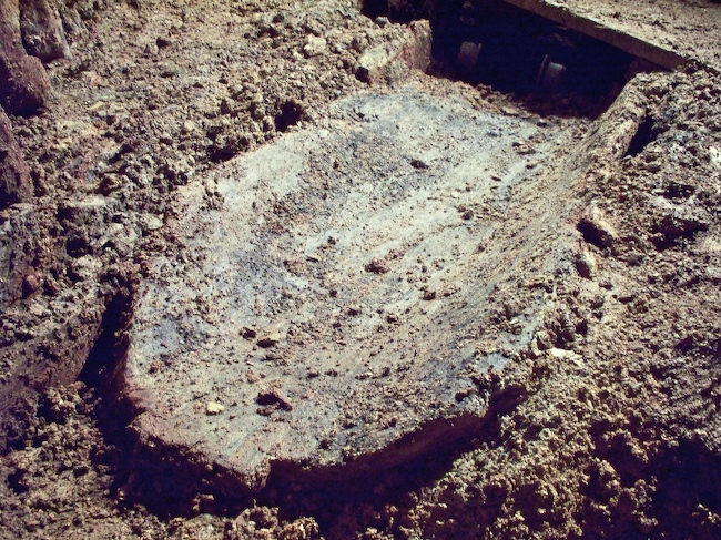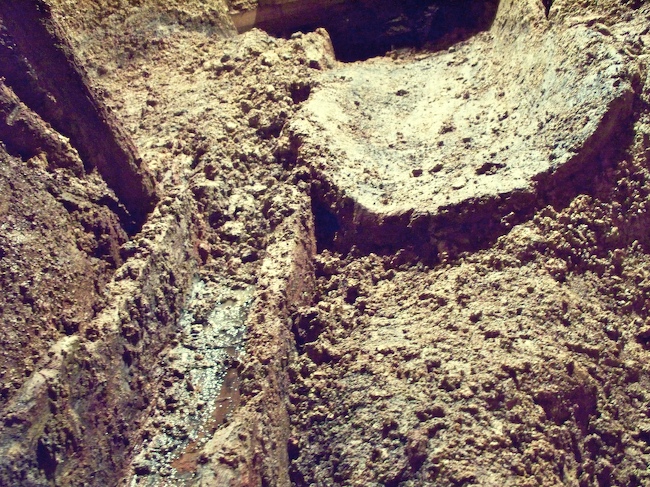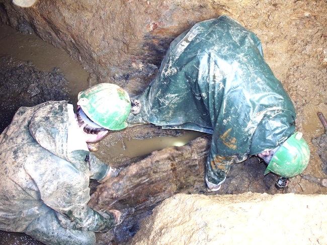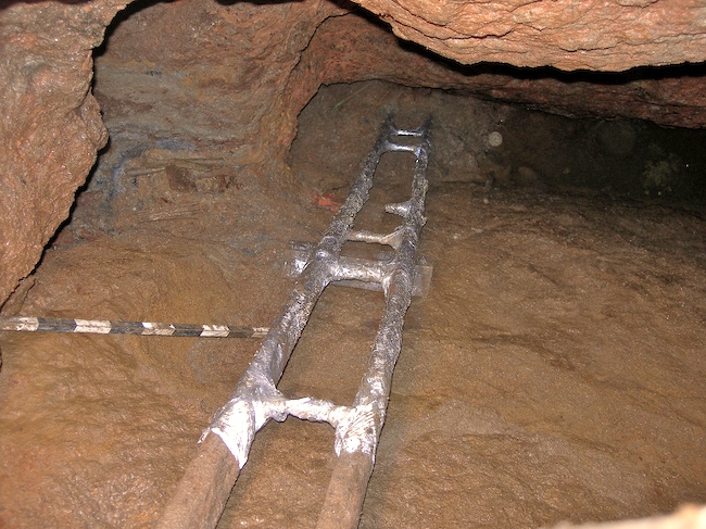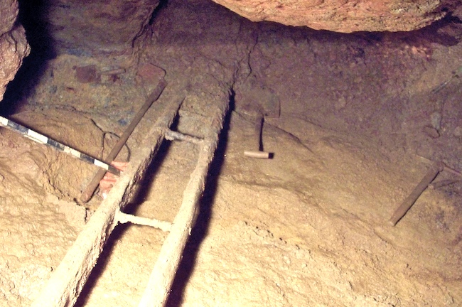 Rinne aus Untersuchungsschacht 8 Ebenfalls im Jahr 2010. Dabei handelt es sich um einen Einlauf aus einem Schacht in das umfangreiche Rinnensystem zur Entwässerung des Grubenkomplexes. Wie schon vorher erwähnt handelt es sich um ein Rinnensystem das von 1222/24 bis wenigstens 1273 in Nutzung war.