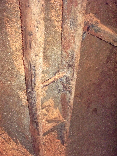 Die aufgefundene Fahrt wies noch eine Länge – wohl sogar die originale Länge – von 514 cm auf, hatte noch 13 Sprossen und war gut 35 cm breit. Die halbrunden Holme der Fahrt (oder auch Stangen, Fahrtschenkel oder Bäume – alles bergmännische Bezeichnungen für die Holme) waren aus halbierten Rundhölzern hergestellt und jeweils mit der Rundung nach außen verbaut. Es ist aber nicht genau bekannt, ob die Hölzer dafür gespalten oder gesägt wurden. Die Sprossen oder Schwingen der Fahrt sind gut 2 – 3 cm dick, rund ausgeführt und im Abstand von gut 50 cm in die Fahrt eingepasst. Die Fahrt war nicht auf der Sohle aufgestellt und hing vermutlich nur an dem oberen Einstrich und der Bastschnur- Befestigung. Ein „Fröschel“ – also ein im Fahrschacht auf den Einstrichen befestigtes Querholz – war nicht mehr vorhanden. Eine direkte zeitliche Einordnung der Fahrt ist bisher noch nicht bekannt – vielleicht aufgrund der geringen Abmessungen der Holme auch nicht möglich. Jedoch wurden die Beifunde in Form verschiedener Hölzer im Schacht in die Zeit zwischen 1187 (sogar mit Waldkante) und 1224 durch dendrochronologische Untersuchungen datiert und auch so publiziert. Demnach ist dieser Grubenbau für einen Zeitraum von nahezu 40 Jahre für den Dippser Bergbau von Bedeutung gewesen, was aber an anderer Stelle noch durch die Gerinne aufgezeigt wird. Die Fahrt dürfte demzufolge mit in diesen Zeitraum passen und stellt wohl ein herausragendes Fundobjekt aufgrund des Erhaltungszustandes und seiner Vollständigkeit dar. Interessant ist auch ein Vergleich mit den Fahrten des 17. bis 19. Jahrhundert. Doch dies werden wir uns mal für einen anderen Beitrag in unserer Technik- Rubrik aufheben...