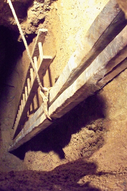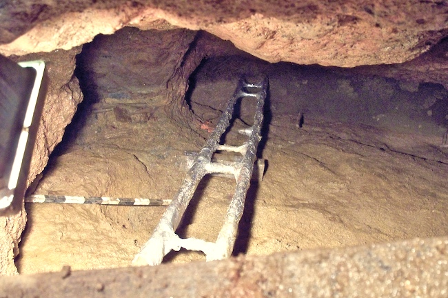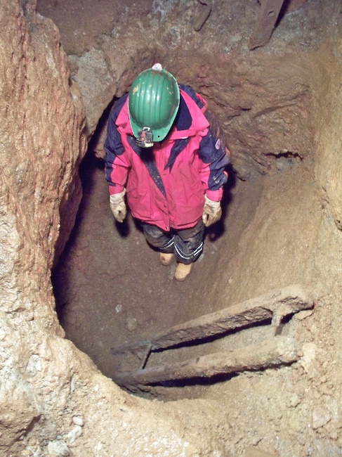 Der Fund einer nahezu vollständigen Fahrt Waren auf den Baustellen in Dipps bis 2010 Funde von Fahrten – gemeint sind die bergmännischen Leitern zur Überwindung vertikaler Hindernisse – zwar in einem rekonstruierbarem Zustand, aber nur als Fragmente erfolgt, so stellte der Fund einer nahezu vollständig erhaltenen Fahrt im Untersuchungsschacht 8 auf dem Grundstück der Pension Göhler schon eine kleinen Sensation dar! Nun war es erstmals möglich, direkte Vergleiche zu den Fahrten aus dem 16. bis 19. Jahrhundert anzustellen, die uns ja aus Beschreibungen, amtlichen Regularien und ebenfalls als Funde in anderen Gruben des Altbergbaus gut bekannt sind. In einem Abbau oder auch Schacht – dies ist im Dippser Uraltbergbau mitunter eins – etwa 14 m südlich des Untersuchungsschachtes 8 auf dem Niveau – 18 m unter der Hängebank befand sich der bemerkenswerte äußerst gut erhaltene Fund. Bei der Freilegung des benannten Abbaus im Juli 2010 schauten plötzlich zwei parallel verlaufende halbrunde Hölzer aus der Verfüllmasse und ermahnten zu einer vorsichtigen Freilegung des Abbaus.
