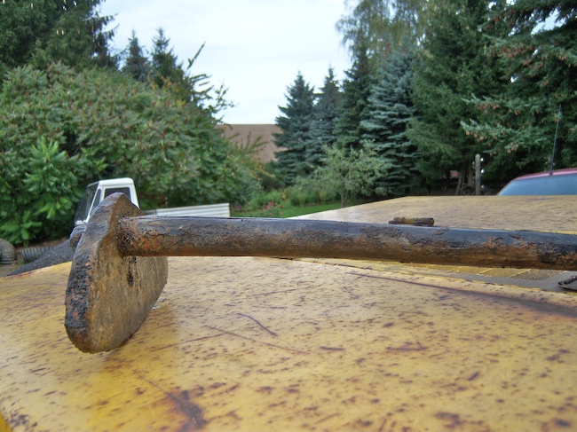 Eine Kratze aus dem Untersuchungsschacht 7 Ein weiterer, spektakulärer Fund des sehr frühen Dippser Bergbaus. Es handelt sich dabei um eine völlig aus Holz hergestellte, gut erhaltene Kratze, welche im Untersuchungsschacht 7 im Baufeld Göhler in einem an den Schacht anscharenden Abbau in gut 23 m Teufe im September 2009 aufgefunden wurde. Die genaue Datierung dieses Werkzeuges war nicht möglich, da keine weiteren hölzernen Begleitfunde in der Nähe lagen und der Stiel für eine dendrochronologische Datierung schlicht zu dünn ist. Gut einen Meter tiefer im Schacht reicht das Altersspektrum des Holzes von 1223 – 1227. Deshalb ist die Kratze auch offiziell vom Landesamt in die Zeit von 1220 – 1230 datiert worden. Die Ausführung dieser Kratze völlig aus Holz erscheint uns heute sehr ungewöhnlich, ist aber für diese Zeitepoche normal. Holz war in ausreichenden Mengen und in guter Qualität besonders im „Miriquidi“, einem den ganzen südlichen Teil Sachsens bedeckenden Primärwald vorhanden. Die heutigen Holzkrankheiten unserer schnell wachsenden Monokultur- Sekundärwälder gab es zu dieser Zeit nicht. Auch ließ sich Holz gut bearbeiten und war kostengünstig. Da war die „Lebensdauer“ solcher hölzerner und vollständig recycelbaren Werkzeuge – die man anschließend auch im Ofen verheizen konnte – nicht von allzu großer Bedeutung. In den Dippser Untersuchungsschächten sind noch weitere völlig hölzerne Werkzeuge aufgetaucht.