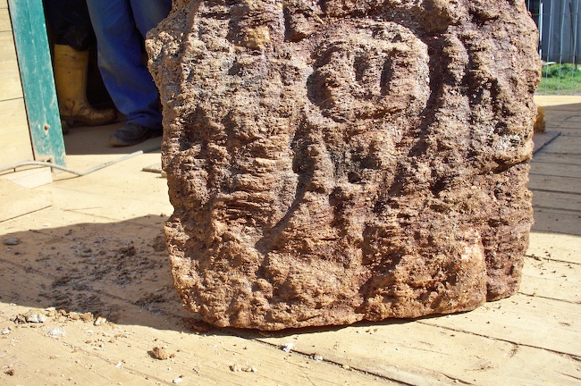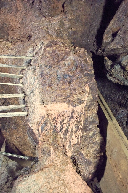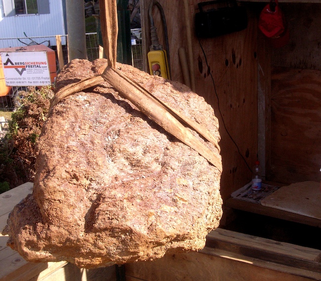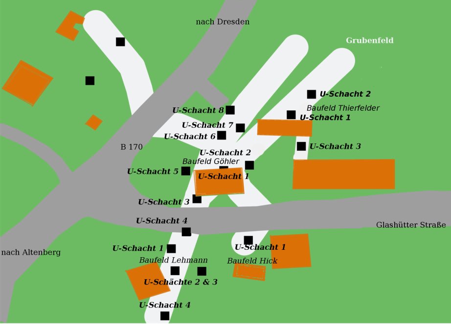 Die Bergung eines "Geistes" Der Titel ist wohl eher eine irreführende Umschreibung - doch irgendwie auch zutreffend. Bei dem sogenannten Geist aus dem Untersuchungsschacht 8 auf dem Gelände der Pension Göhler – nur eine vorläufige Arbeitsbezeichnung des Verfassers – handelt es sich um eine figürliche Reliefdarstellung aus der Zeit des Dippser Bergbaus. Dieses Relief ist direkt in das anstehende Nebengestein unweit einiger Schächte und Abbaue im Bereich der -18 m Sohle des Untersuchungsschachtes 8 von den frühen Bergleuten mechanisch eingearbeitet worden. Vermutlich mit den Werkzeugen – besser Gezähe – der damaligen Bergleute, also mittels Schlägel und Eisen hergestellt. Eine Deutung des Fundes ist bis heute nicht möglich gewesen. Es gibt nur eine Vielzahl an Theorien und Hypothesen, die hier nicht Gegenstand der Betrachtung sein sollen. Viel wichtiger ist jedoch die Tatsache, daß es sich hierbei nicht um einen Erstfund in Dippoldiswalde handelt! Schon um 2000/2001 ist im Untersuchungsschacht 1 unter der Pension Göhler ein ähnliches Relief aufgefallen. Leider ist dieses Relief mit in der Schachtverwahrung aus Beton verschwunden. Auch hier gibt es keine realistische Erklärung, sondern nur Theorien und Hypothesen. Der Fund aus dem Untersuchungsschacht 8 ist durch das Landesamt für Archäologie geborgen worden. Dieser Umstand einer quasi „abrasiven“ Entfernung von Kulturgut mag wohl umstritten sein, doch sollte dies auch von Kritikern als einzige Alternative angesehen werden, um auch zukünftigen Generationen solche Fundstücke im Original zugängig zu machen. Denn auch der Untersuchungsschacht 8 ist mittlerweile mit Beton verwahrt.