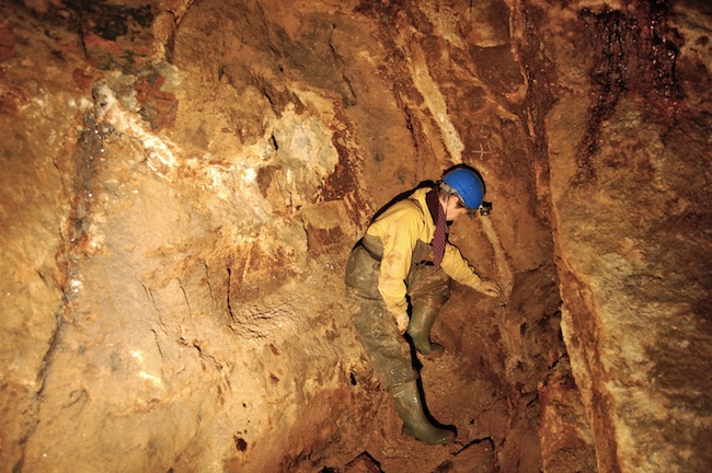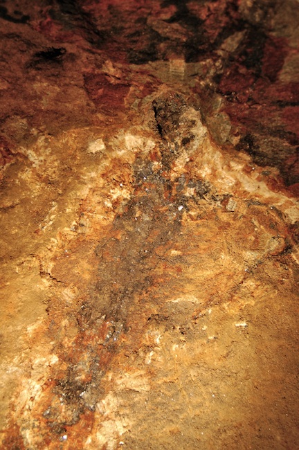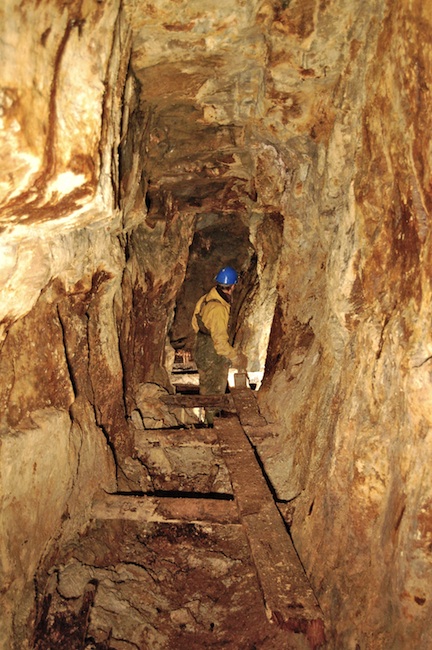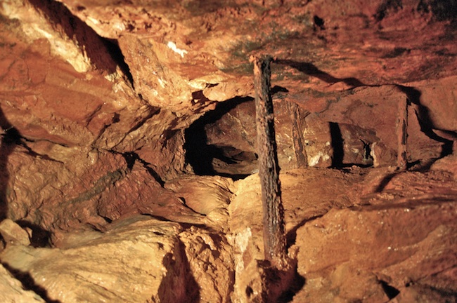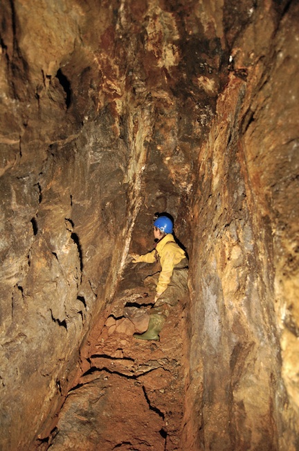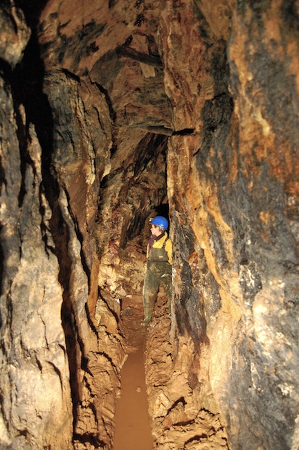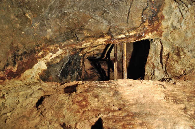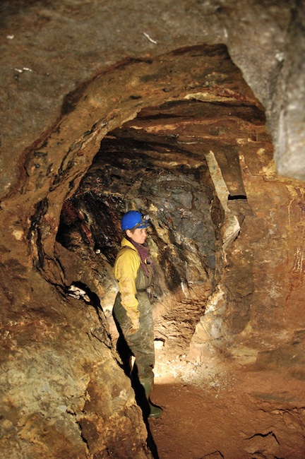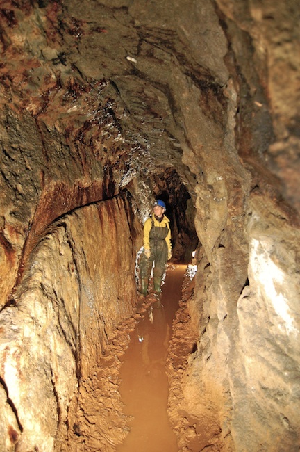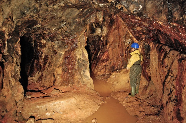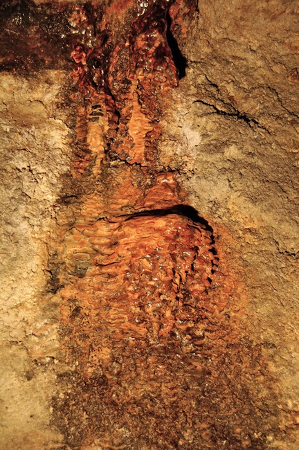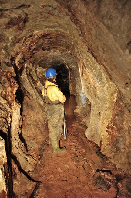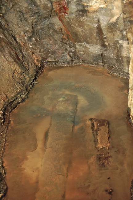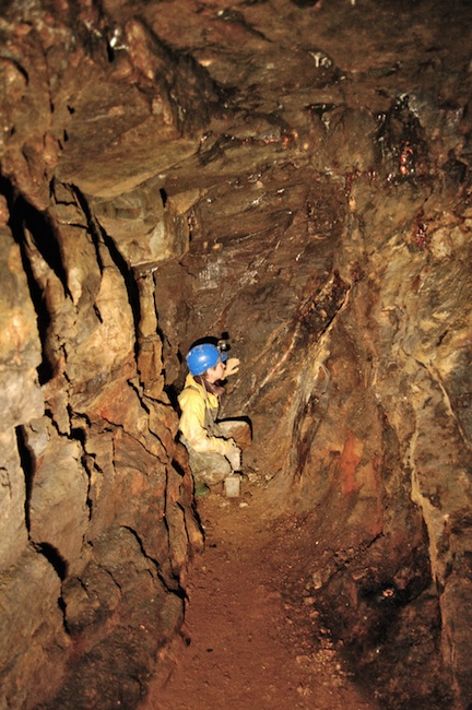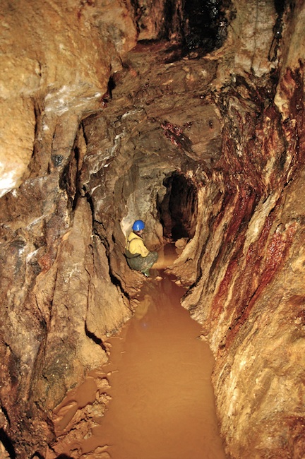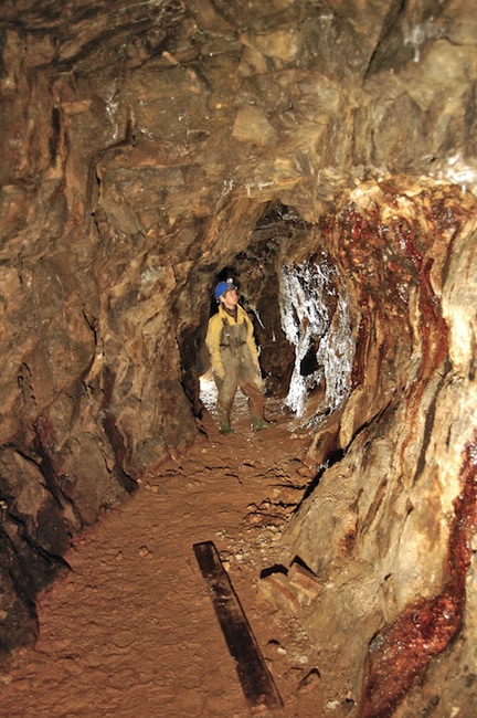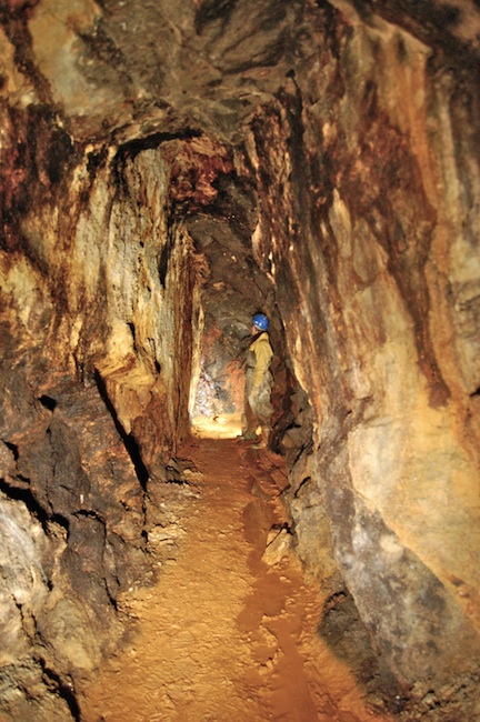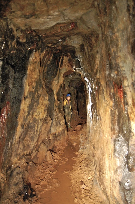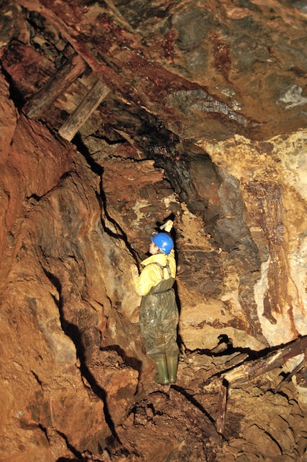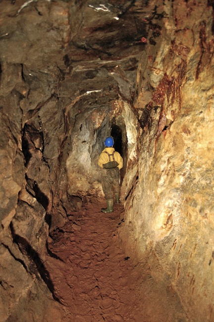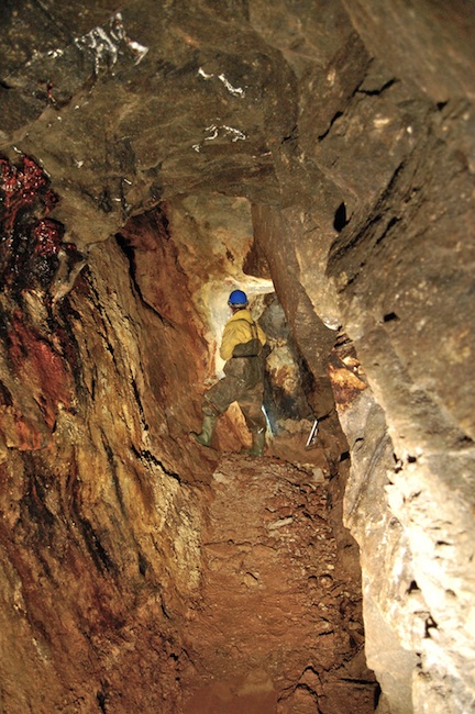 ![]() Der eigentliche Erzgang ist bestenfalls an den Sinterbildungen zu erkennen. |