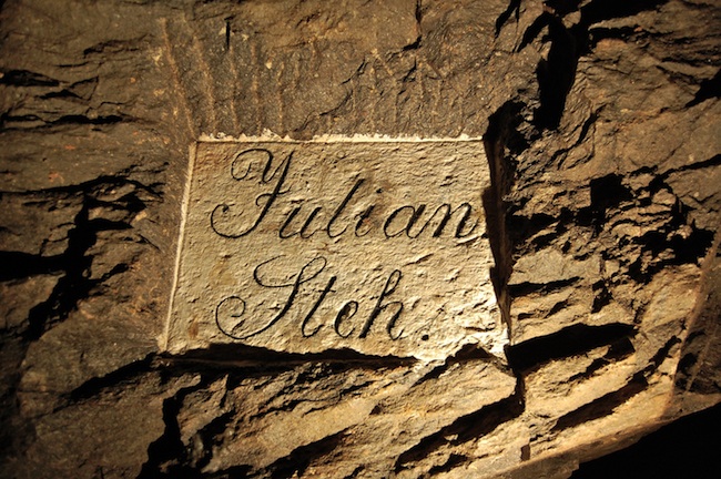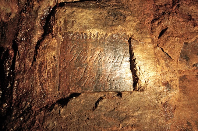 ![]() Die Tafel vermerkt das Jahr des Auffindens des Ganges. |