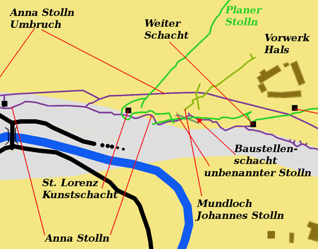 Halsbrücke. Der Name „Planer Stolln“ geht auf den Nachfolger des Bergvogts