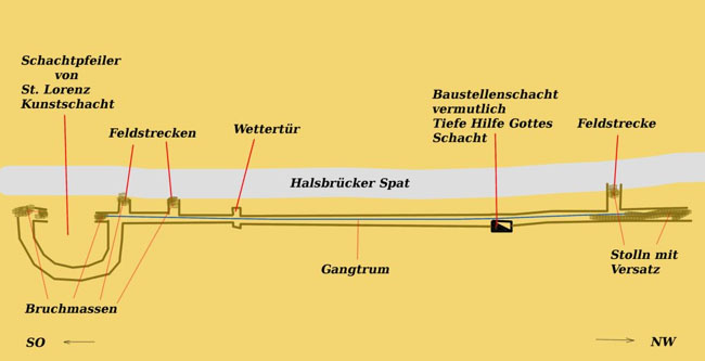 Schacht abgesehen werden. Dieser Stollnteil ist ausschließlich in