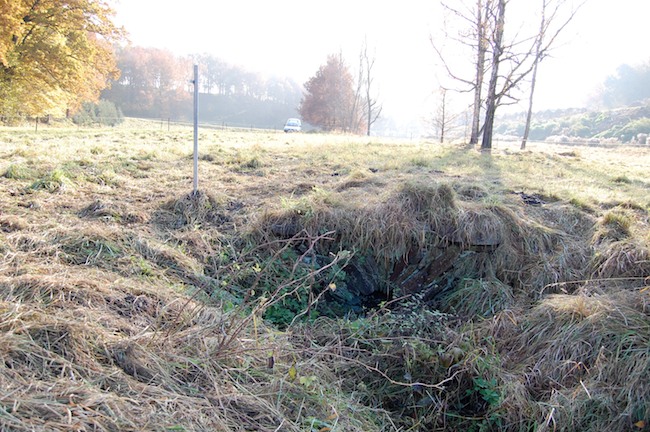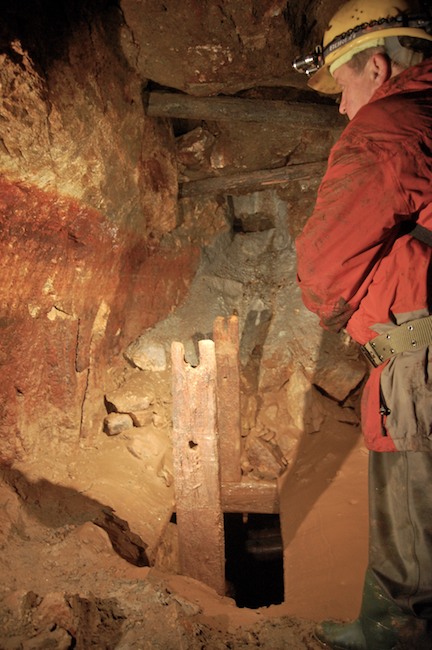 ![]() Auf dem „Friedrich Spat“ befindet sich auch dieses Gesenk mit den Resten einer Handhaspel – wohl aus dem 18. Jahrhundert. |