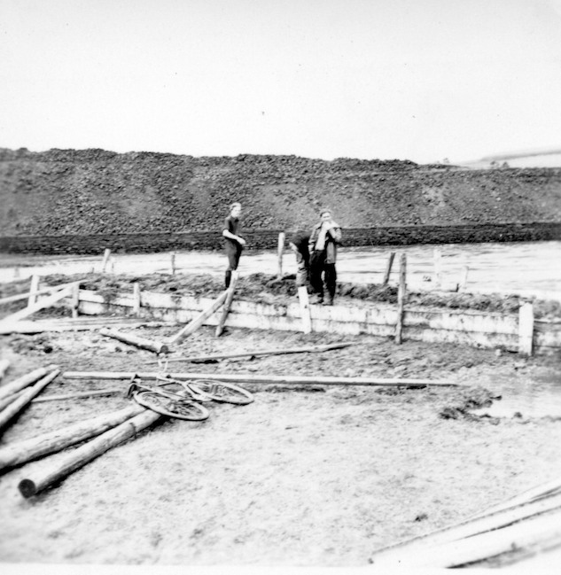 ![]() Der „Johannes Spat“ mit Blickrichtung zum „Friedrich Schacht“ ist hier in den 1950er Jahren – vermutlich 1954/55 – aufgrund des 18-Punkte-Hochwasserplanes der Grube „Beihilfe“ fahrbar und wasserwegsam hergerichtet worden. |