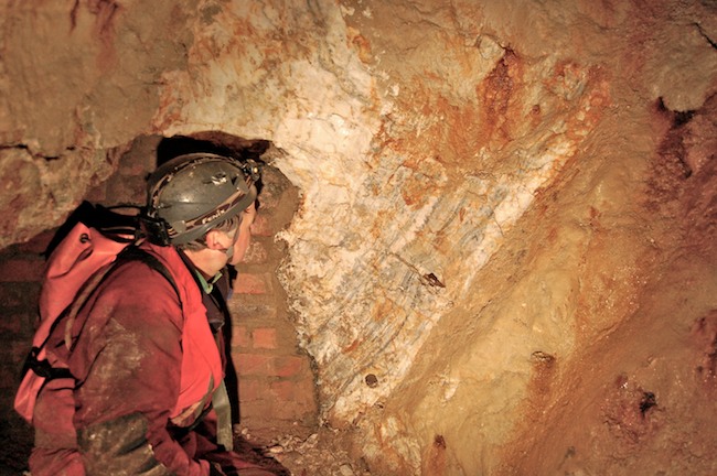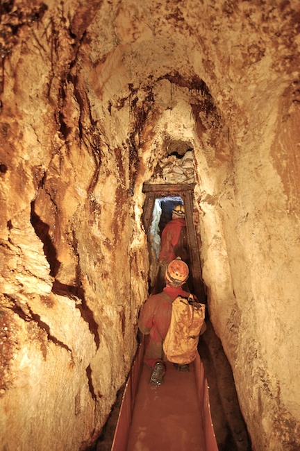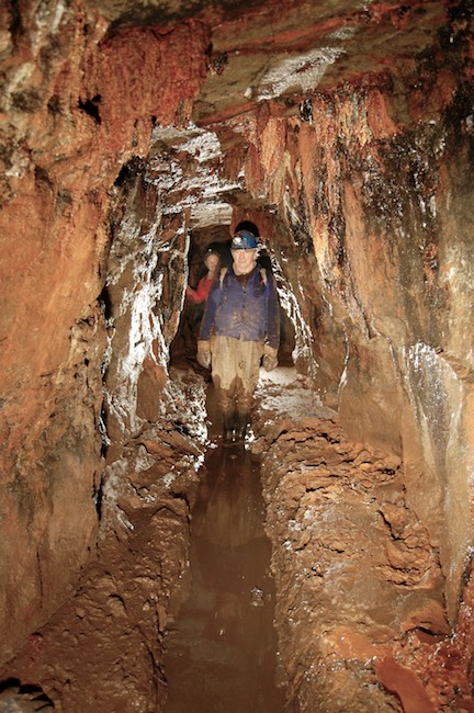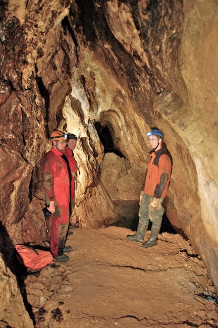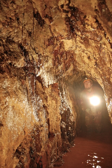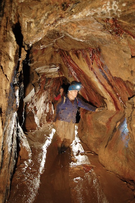 ![]() Einige Sinterbildungen begleiten uns auf dem Weg zum „Hütten Schacht“. |