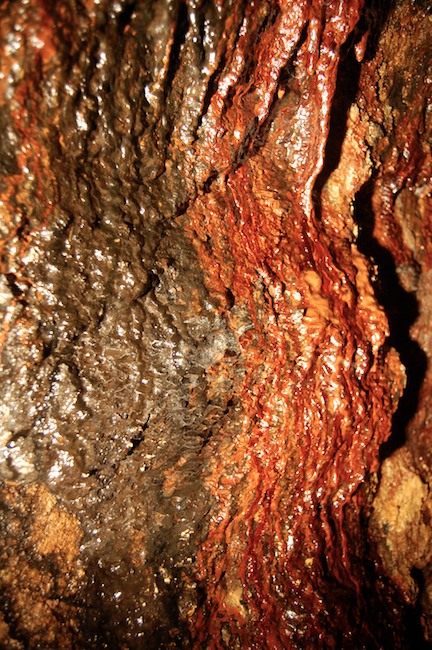 ![]() Nach einigen Metern endet der fahrbare Teil dann an einem Schuttkegel eines Bruches. Doch gibt es hier die wohl schönsten Ausbildungen besonders in Hinsicht auf die starke Verfärbung.