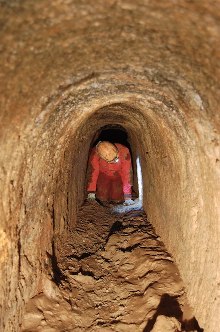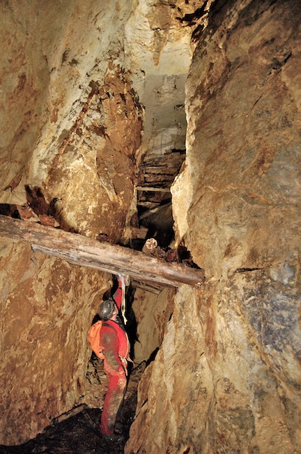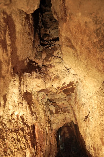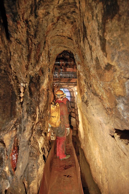 ![]() Stellenweise verengt sich das Profil durch den später zusätzlich eingebrachten Ausbau stark. Hier am Anfang eines solchen Bereiches. |