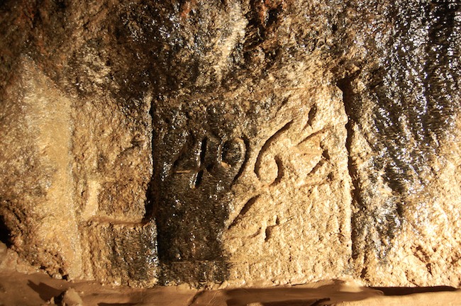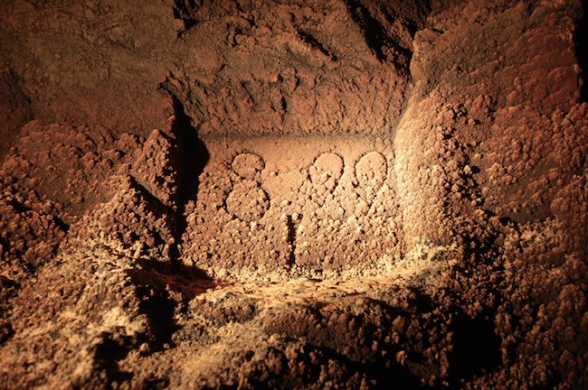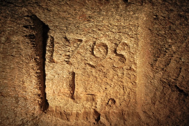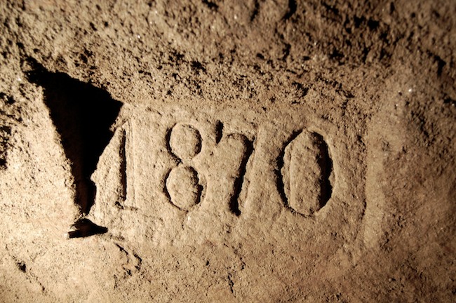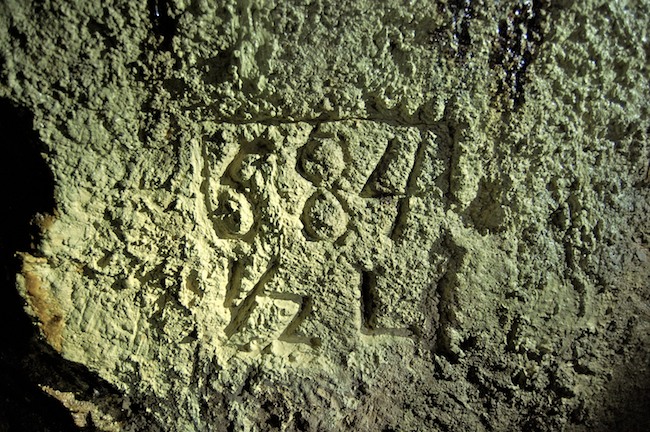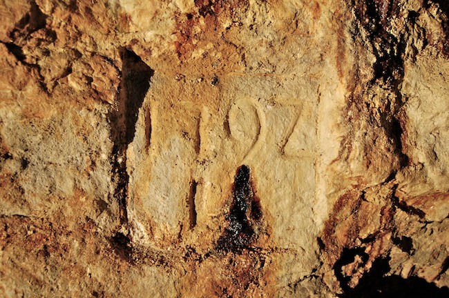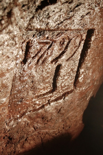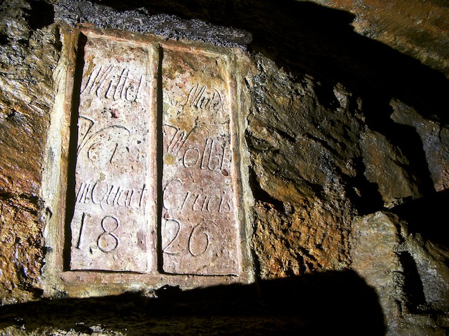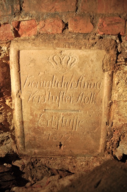 ![]() Und noch mal von der anderen Seite, damit der Schlagschatten die Schrift gut lesbar macht: "Mitte Mulde, verwölbt im Quartal Crucis 1826". (Foto: G. Voigt) |