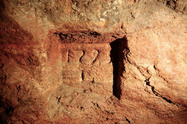 ![]() Gut zu erkennen anhand der Versatzmauerung im Gangbereich. |