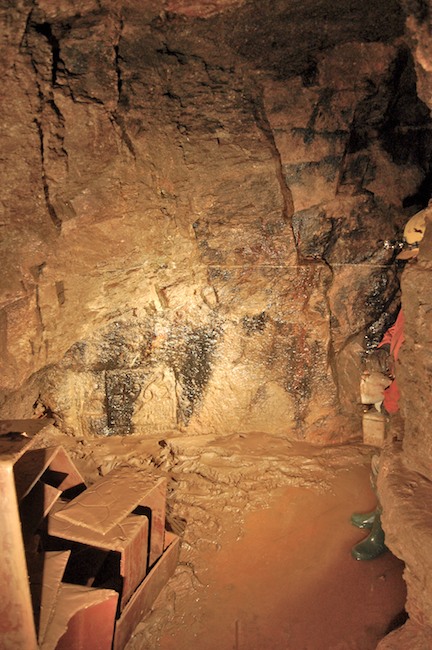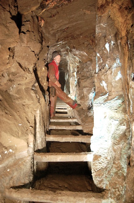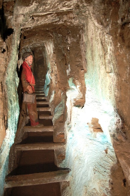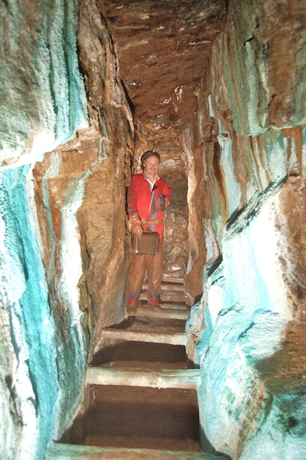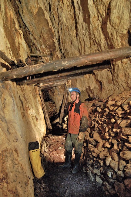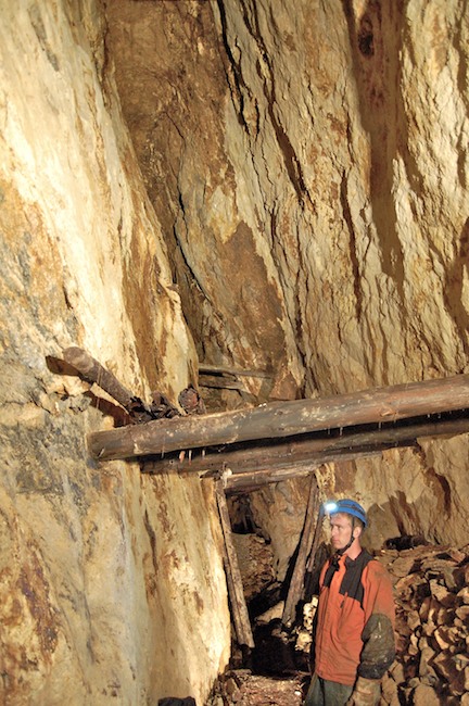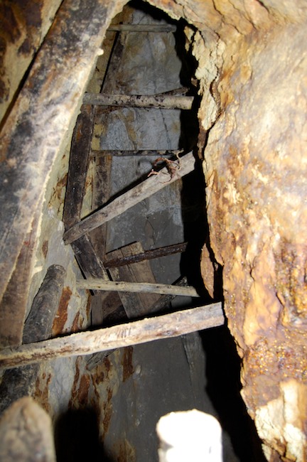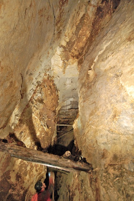![]() Blick nach oben in den Abbau. Hier hatten sich wohl Mineraliensammler vor vielen Jahrzehnten ein „Paradies“ geschaffen. |