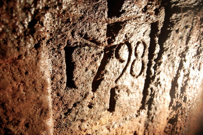 ![]() In diese Zeit sind auch die mächtigen Gewölbe zu datieren. Diese sind hier mittels Sand und Kalk vermauert. |