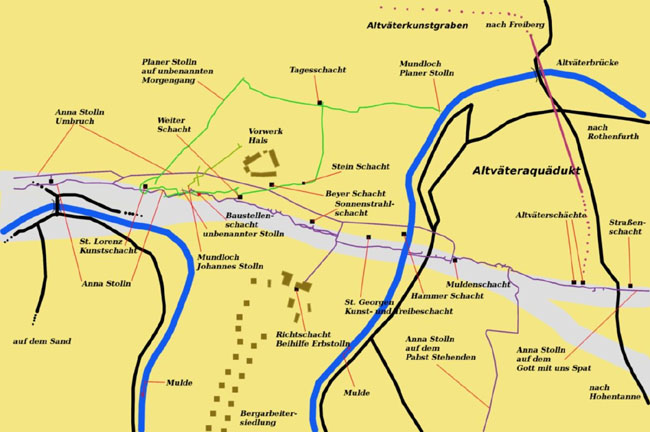 Hüttengraben“ angelegt wurde und von der unteren Rathsmühle bei Freiberg