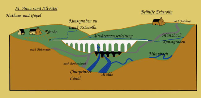 für das benötigte Wasser in den Halsbrücker Hütten und leitetet einen Teil