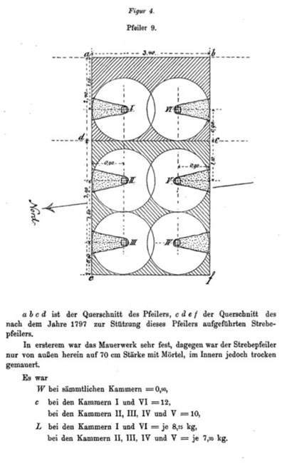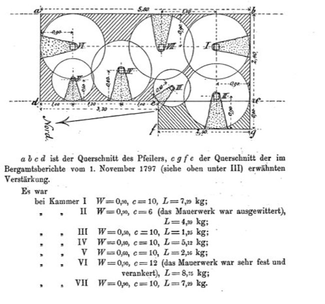 und der dazu gehörigen beiden Pfeiler sich durch die Sprengungen in einem Maße