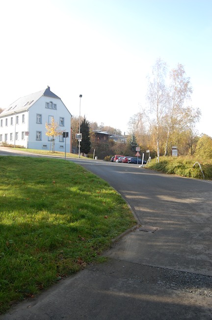 ![]() Dahinter: Abzweig des Bergmannsweges am Hammerberg gegenüber der Tischlerei. |