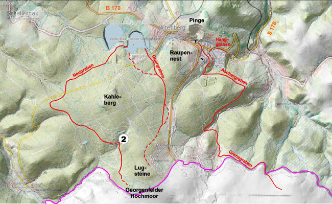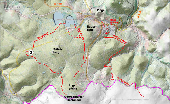 ![]() Zur Orientierung: Am Punkt 7 verläuft der Quergraben zwischen Kahleberg und Raupennest. |