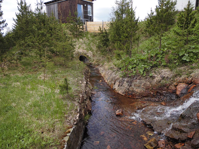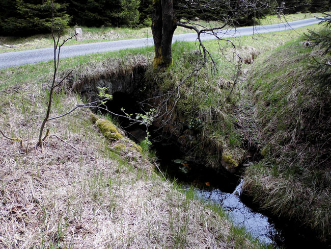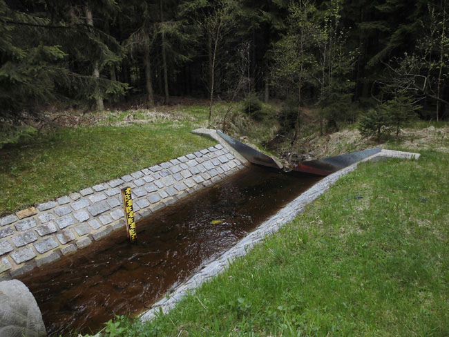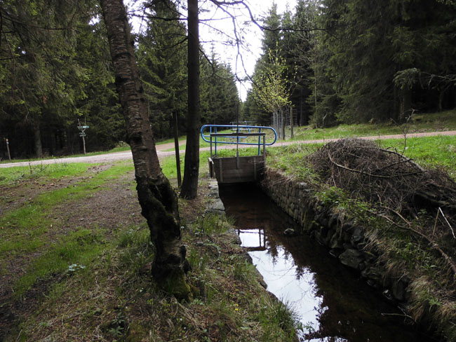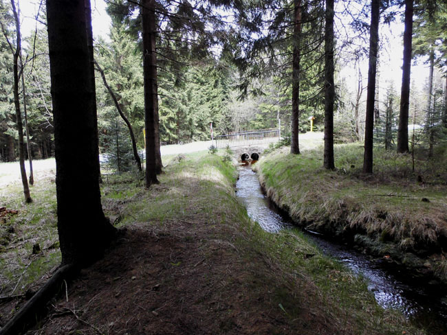 Aus Richtung Zinnwald besteht hier noch ein altes Einlaufwehr. In diesem Abschnitt wurde der Quergraben bereits vor 1880 einmal begradigt (vgl. Karte am Anfang). |
