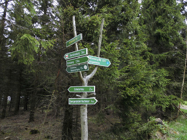 Man muß vor dem Tunnel von der B170 abbiegen, ein Stück die S174a in Richtung Georgenfeld und dann auf den Hochmoorweg abbiegen – eigentlich logisch. Unterhalb vom Hochmoor gibt’s diesen unscheinbaren Wanderparkplatz. |