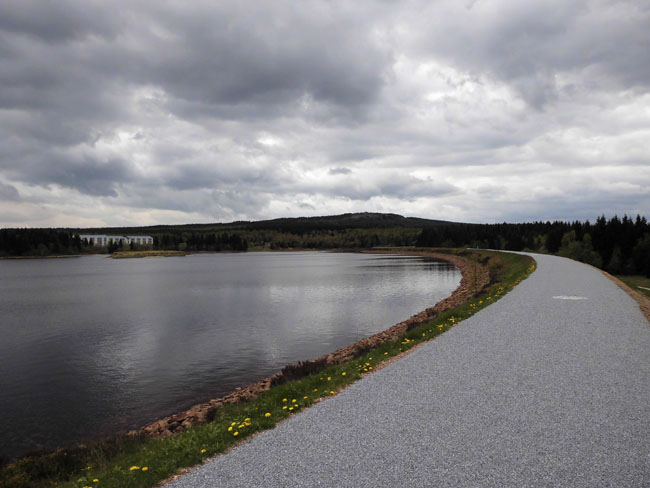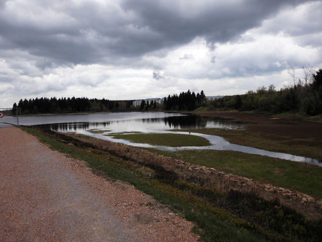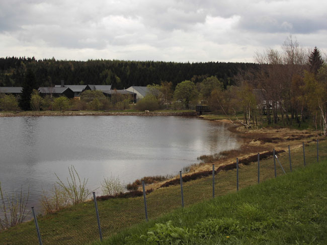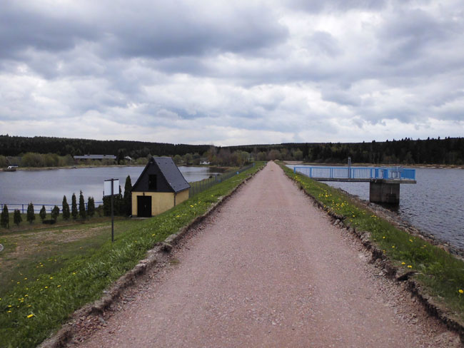 Da hinten an der Südspitze des kleinen Bruders fließt dann das Wasser zum Tiefenbach und zu den einstigen Schacht- und Aufbereitungsanlagen in Altenberg ab. |
