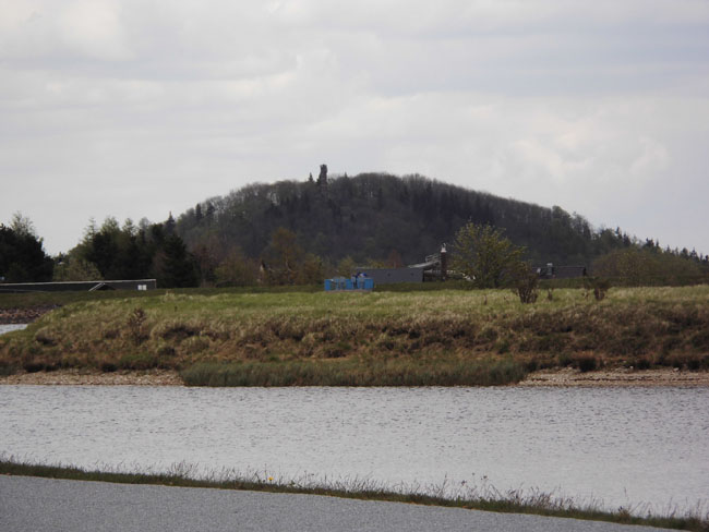 Hinter der Insel im Teich grüßt uns auf der einen Seite der Geisingberg... |