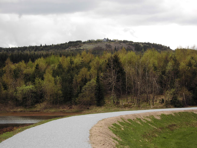 Noch ein Blick zurück zum Kahleberg. Am Südwestufer gegenüber die Reha-Klinik am Raupennest. |