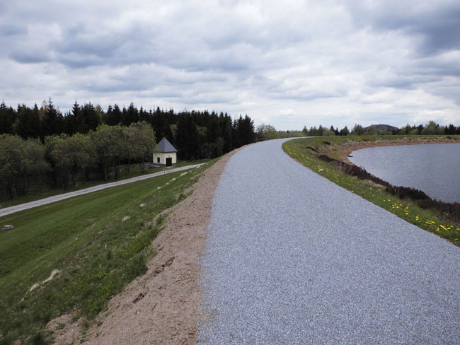 Wo es etwas steiler abfällt, ist der talseitige „Damm“ aber wieder da. |