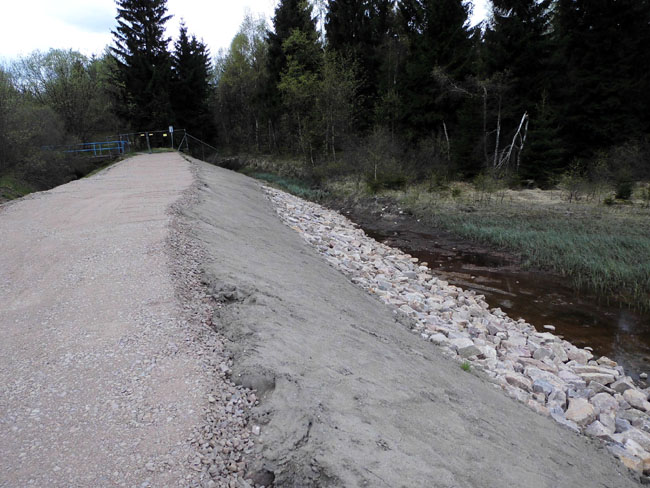 Zumindest ein Trampelpfad auf dem Damm ist noch da und ganz gut begehbar. |