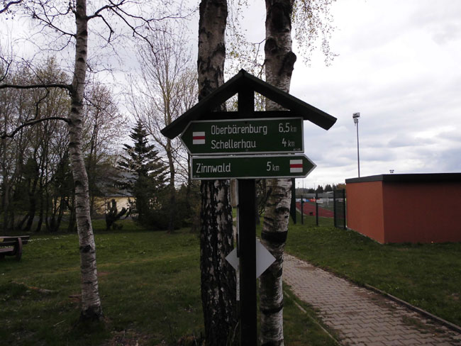 Aha: Von Georgenfeld 4 km, wenn man die gerade Schneise benutzt. Nach Altenberg noch 1,5 km. |
