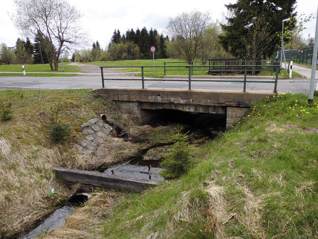 Hinter der Straßenbrücke ist ein altes Überfallwehr eingebaut. |