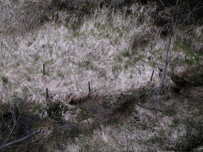 Auch hier finden sich wieder Bohrstangen und alte Pfosten als Böschungssicherung. |