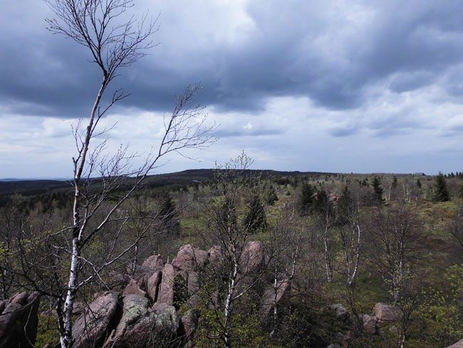 Wo wir schon mal hier sind und weil wir uns nach dem am Ende doch noch zuverlässig eingetroffenen Regenschauer noch trocknen wollten, steigen wir noch schnell auf die schicken Porphyr-Klippen der Lugsteine… |