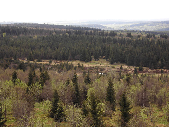 Für´s erste haben wir uns hier noch einmal für die Schneise 28 entschieden, die schnurgerade in Richtung Nordwesten und zunächst bergab in Richtung Warmbachtal führt. Den ersten Kilometer ab dem Hochmoor haben wir jetzt auch schon hinter uns. |