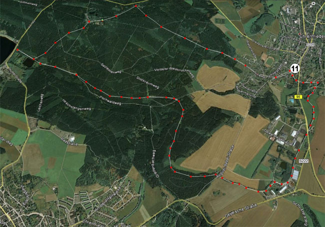 ![]() Punkt 13: Runde geschafft: Wir sind wieder oben an den Greifensteinen.