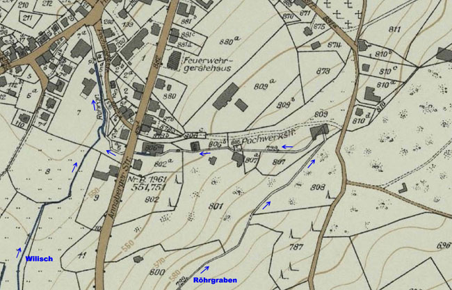 Apropos: Wo lief das Röhrgrabenwasser doch ab? Wir nehmen die Pochwerkstraße talwärts. |