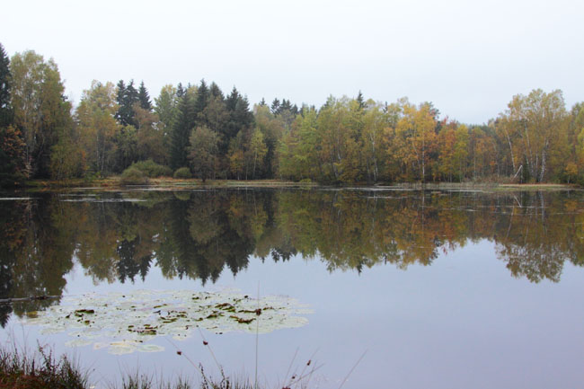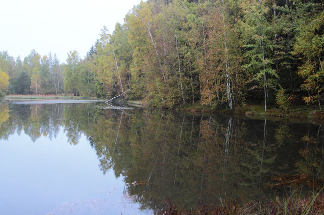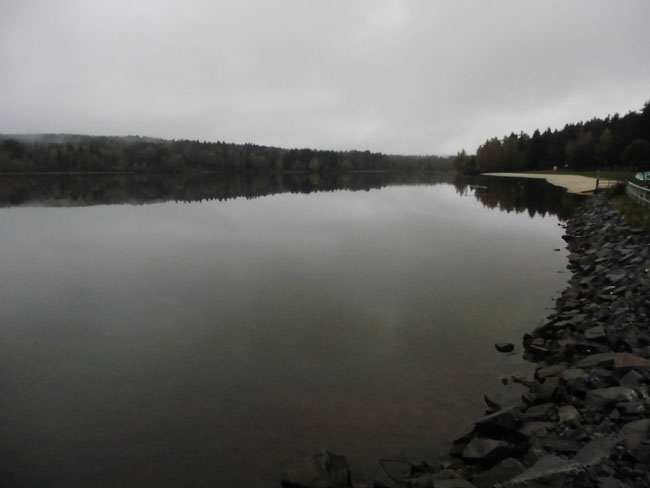 Immerhin: So spiegelglatt liegt der Teich auch nicht oft vor den Besuchern. Rechts der Badestrand - wird bei kaum +5°C aber auch nicht sehr frequentiert... |
