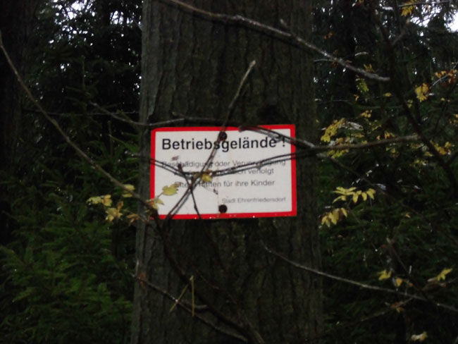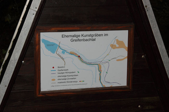 Diese Schilder hängt heute die Stadt Ehrenfriedersdorf hier auf. "Betriebsgraben" der Zinnerzaufbereitung ist er seit 1991 natürlich nicht mehr. |