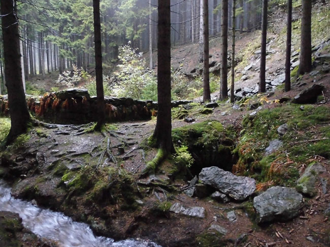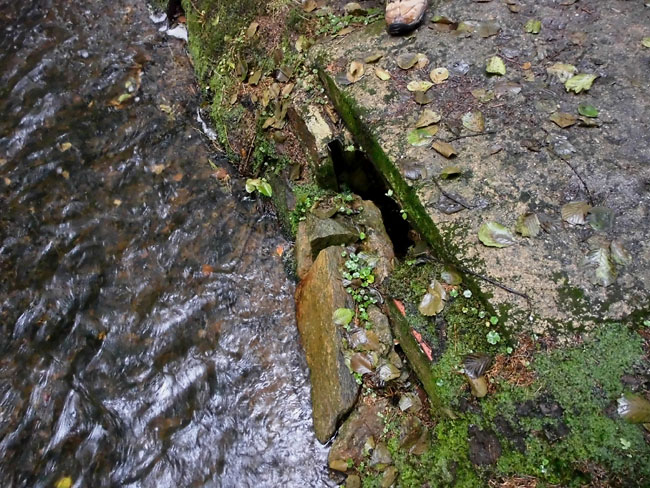 Hier verschwindet es schon wieder in Laub und Bewuchs. |