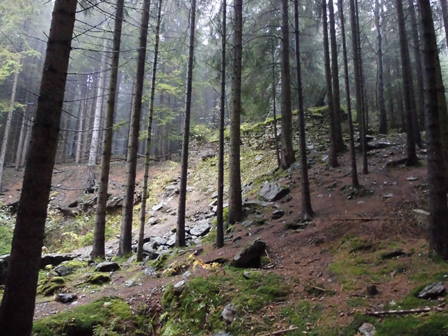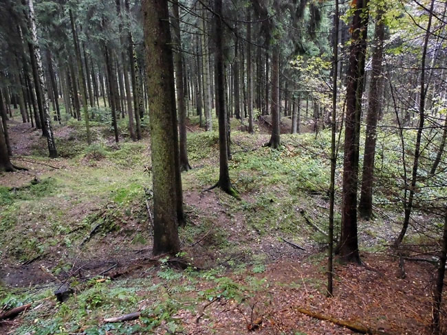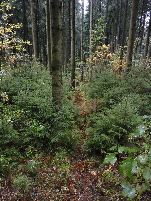 ...schaut man aber genauer hin, entdeckt man überall Spuren der Vorfahren: Wir laufen schließlich durch die Greifenbachtal-Seife und das erkennt man gut an den zahlreichen Raithalden. |