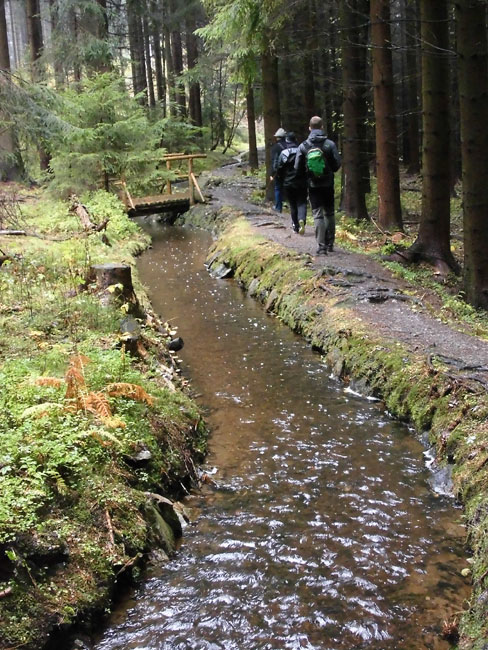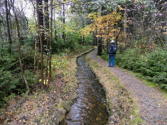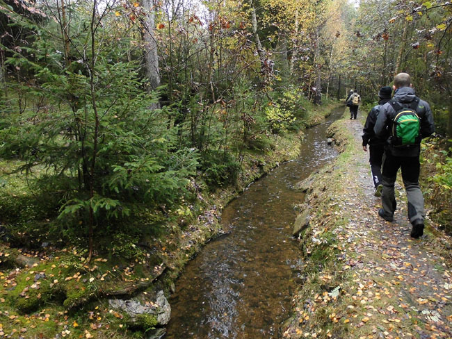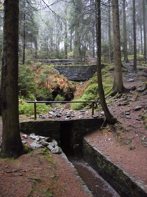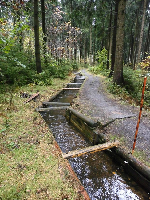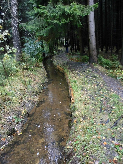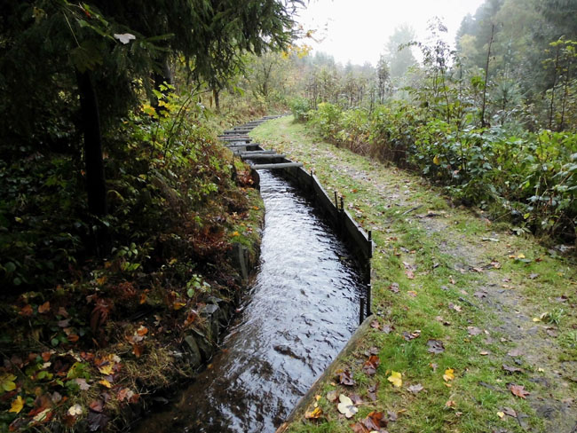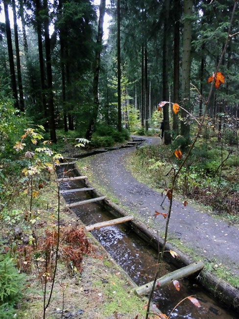 Vor der bergbaulichen Erschließung des Sauberges führte ein weiteres Grabenstück noch weiter bis ins etwa 500 Meter entfernte Seifental östlich von Ehrenfriedersdorf. In der letzten Bergbauperiode wurde das Wasser bis zu einer Pumpstation geleitet, von welcher es bis 1990 der Zinnerzaufbereitung auf dem Sauberg zugeführt wurde. Seit der Mitte des 19. Jahrhunderts wurde das Röhrgrabenwasser außerdem durch die Ehrenfriedersdorfer Textilindustrie genutzt. Zwischen 1999 und 2002 wurde der Röhrgraben denkmalgerecht instandgesetzt. Und das wollen wir jetzt auch sehen… Also los! Es ist Herbst, die Blätter liegen unten und das ist (meistens) eine gute Zeit, um noch einmal auf den Spuren des Altbergbaus zu wandern... Wir hatten allerdings nicht gerade tolles Wetter für unsere Tour erwischt...