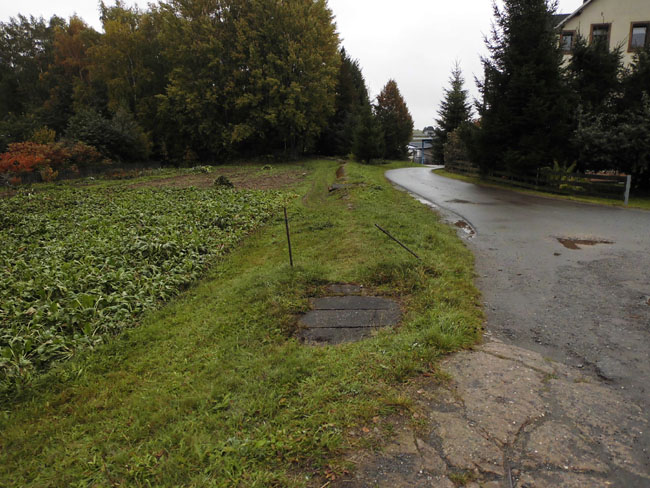 Wir nähern uns nun aus westlicher Richtung dem Ortsteil Mönchbad. Wirklich frostsicher erscheint die Verlegetiefe dieser Wasserleitung aber nicht... |