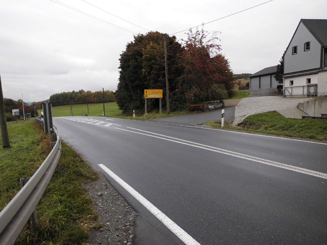 Hier sieht man Rohr und Schächte mal wieder ganz gut. Im leichten Bogen geht es nun spitzwinklig auf die B 95 zu. |