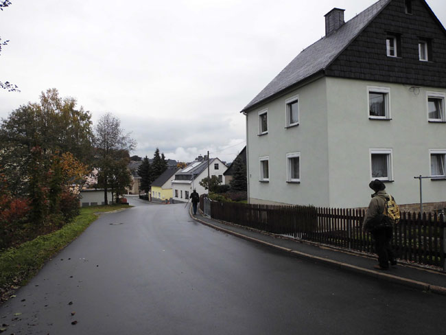Wir haben jetzt reichlich die halbe Länge hinter uns und die August-Bebel-Straße erreicht, die zwischen Hahnenrück und Friedrich-August-Höhe nordostwärts direkt nach E´dorf führt. |