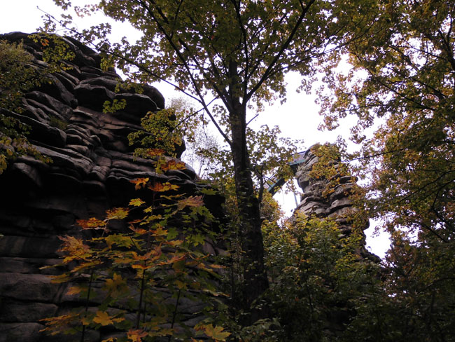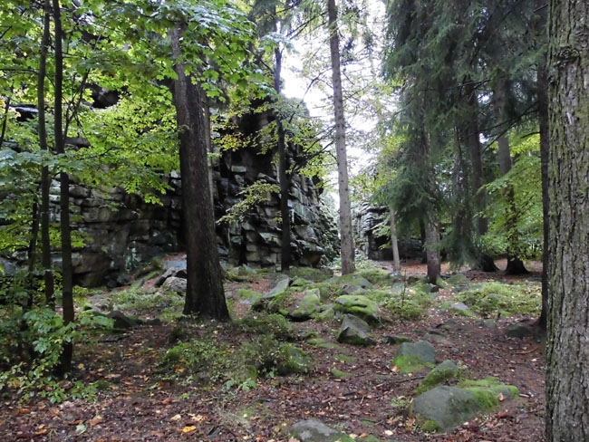 Greifensteine in einem geschlossenem Waldgebiet. Durch die