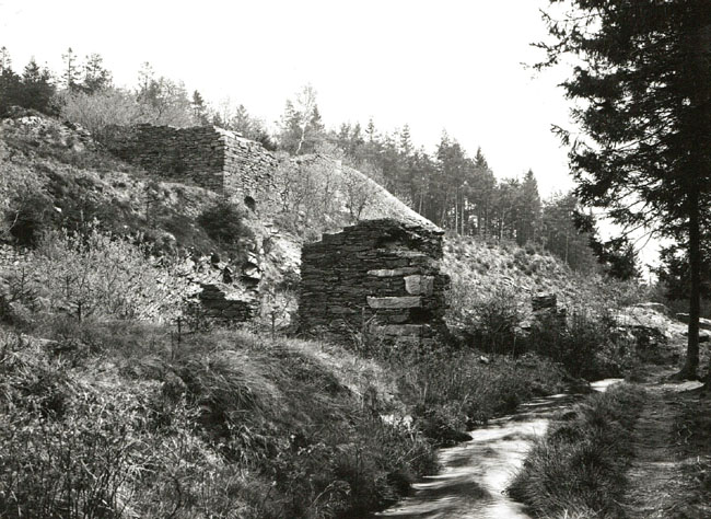 ![]() Die Ruinen der Pochwäsche am Leier Stolln 1927 (Bildquelle: SLUB, Deutsche Fotothek, Aufnahme: P. Schulz).