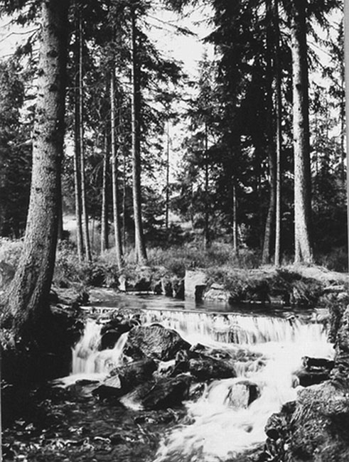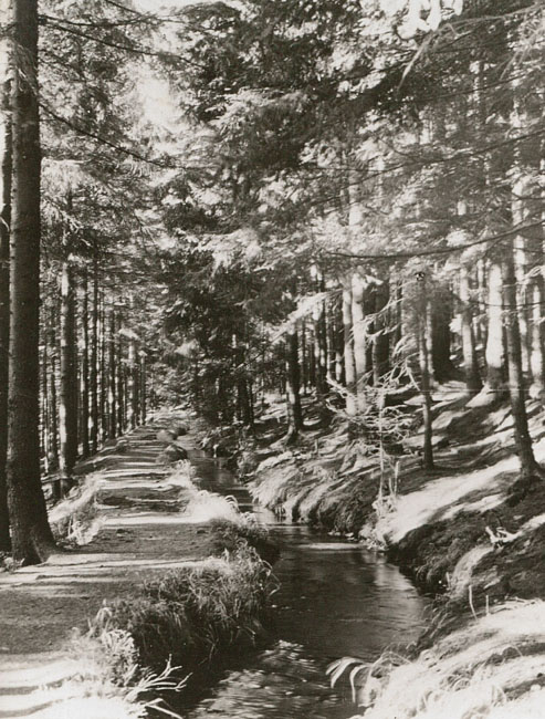 ![]() Das Röhrgrabenwehr am Greifenbach im Zustand um 1959 - das Foto kann aber auch falsch datiert sein, denn ein Herr Schulz hat schon 1927 hier photographiert. Blick den Greifenbach aufwärts; der Röhrgraben zweigt nach rechts ab (Bildquelle: SLUB, Deutsche Fotothek, Aufnahme: P. Schulz).