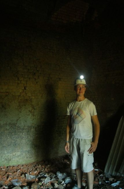 Okay, war zu heiß für berggerechte Kleidung. Aber beim nächsten Besuch hatten wir Mütze und Licht mit und haben uns den Brennraum auch von innen angesehen. Hinter unserem Beleuchter sieht man keine Füchse (Rauchabzüge) in der Ofenwand. |